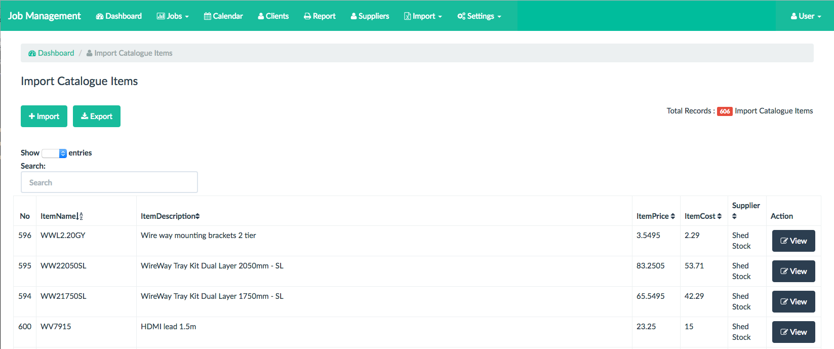 Import items from your suppliers, allowing employees to easily add items to a job when used including on the fly configurable markup adjustments to pricing.